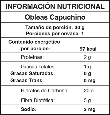 Obleas con sabor a café capuchino, dulces y cremosas.